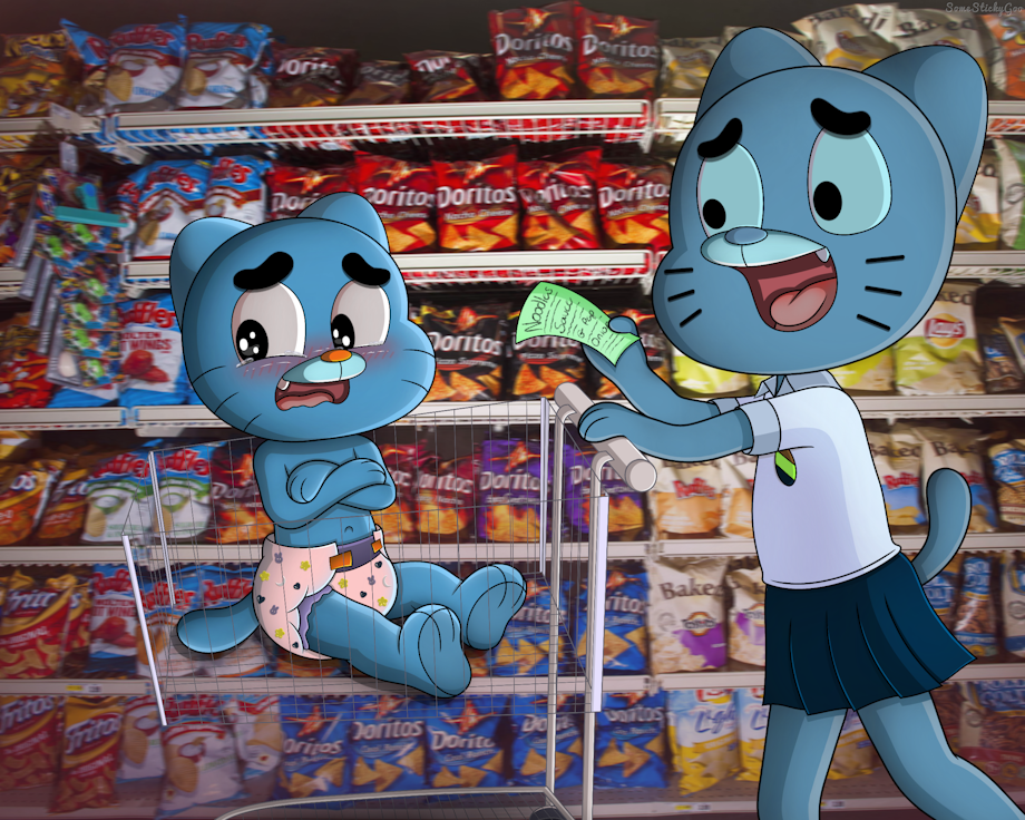 Me pushing a shopping cart looking over like; can I get a price check on the blue cats in diapers?