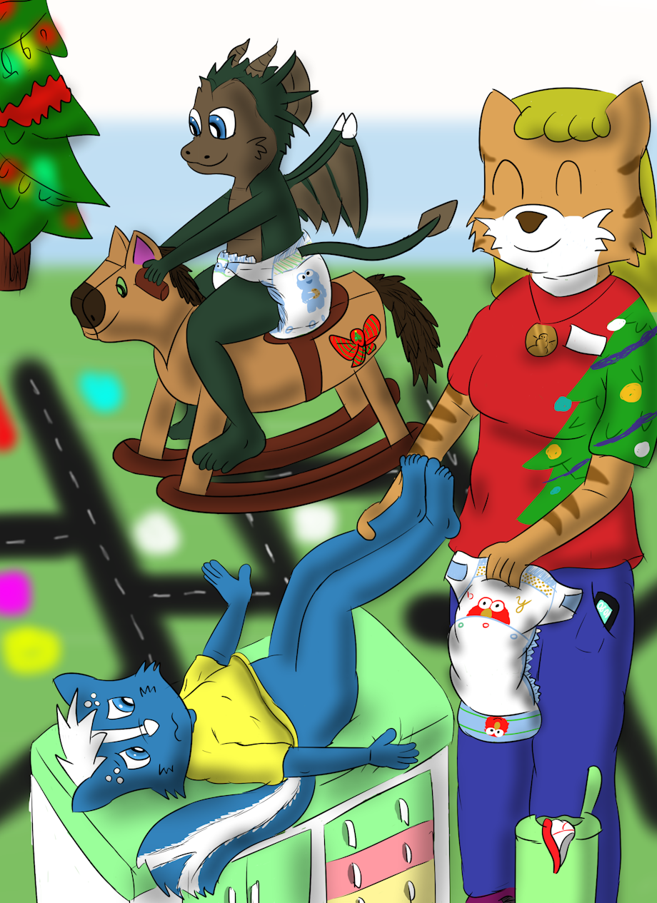 Gus thought it would be a good idea spend the christmas eve with one of his friends, Devem, a dragon around the same age... But he didn't knew that Devem had a christmas tradition... Every night before christmas he gets all diapered and treated as a baby full time, from babyfood to presentes and even diapers..