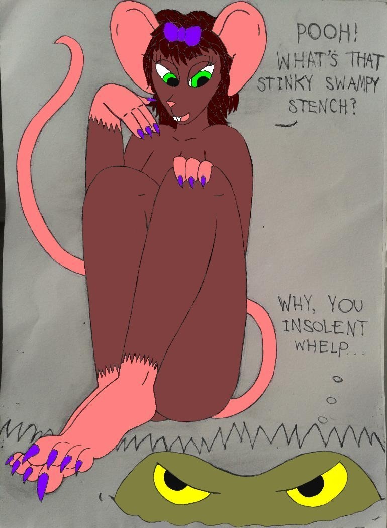 A little cartoony vore sequence I drew about the sad (and yet somewhat slapstick) fate of a bratty, spoiled young mouse named Rosalind, and how she learned a lesson she would never remember.