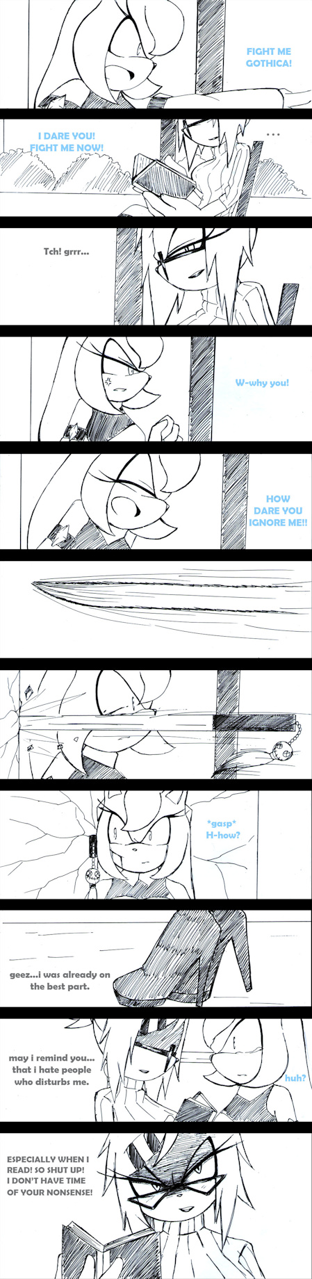 Wow, Gothica hates to be disturb when she read her book.