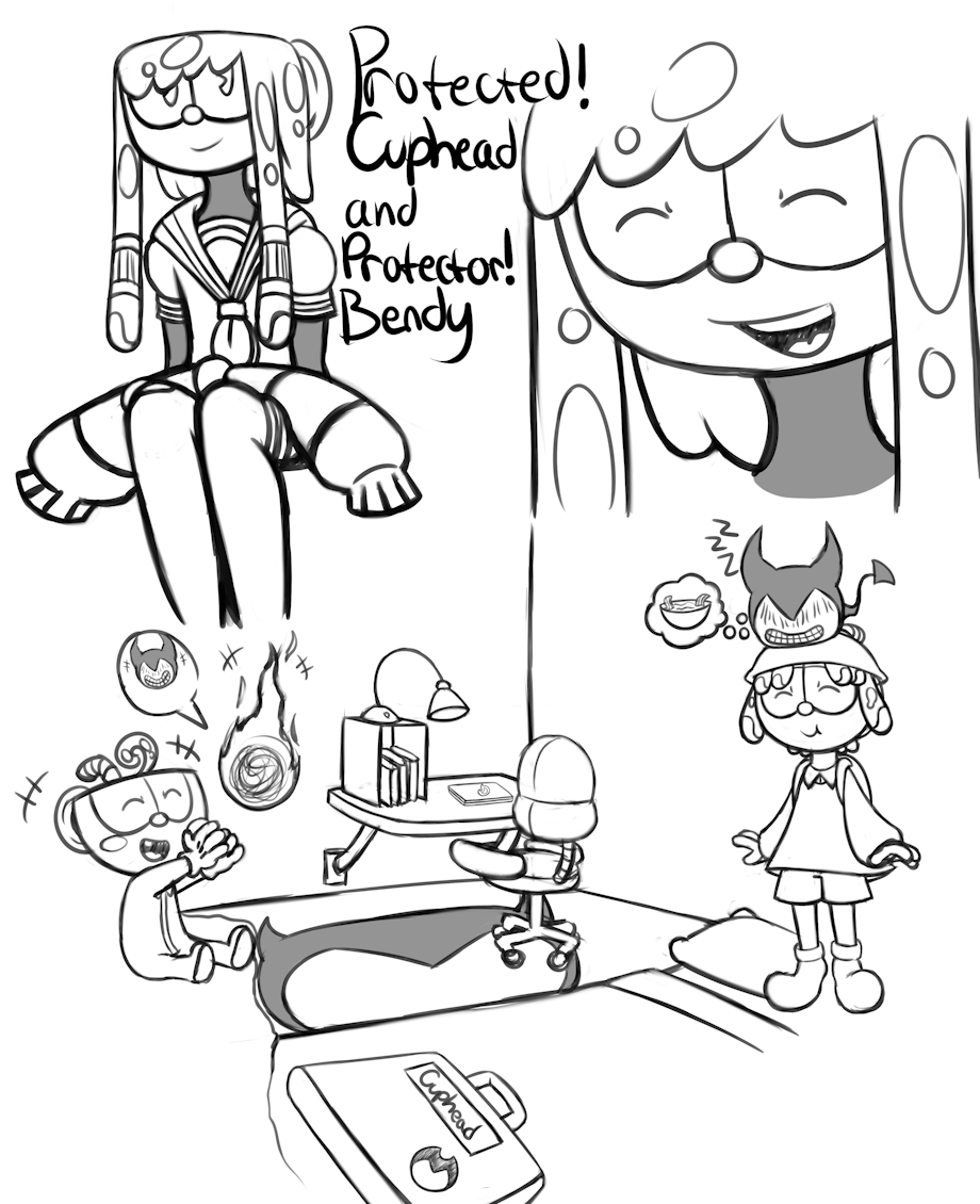 Protected!Cuphead and Protector!Bendy's deigns by me.