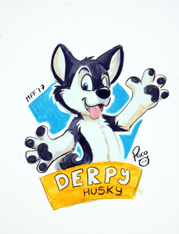 A spontaneous badge I did during MFF. My only reference was his own fursuit, looking at it (well, and also I took him a picture).