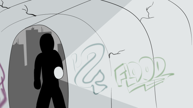 Old sewer system with an entrance into a nearby drainage ditch was where he would begin his journey. His heart beat increased with excitement and fear as he made his way into the tunnel. The shadows cast by his flashlight made the spiderwebs dance in eerie cracks along the tunnel walls. He was a brave kid. Not afraid of spiders, roaches, or bats. However he did still use his flashlight to check himself of any creepy crawlies that might have stowed away on his shirt. With the light trained on him you could see he was a short, cute...
