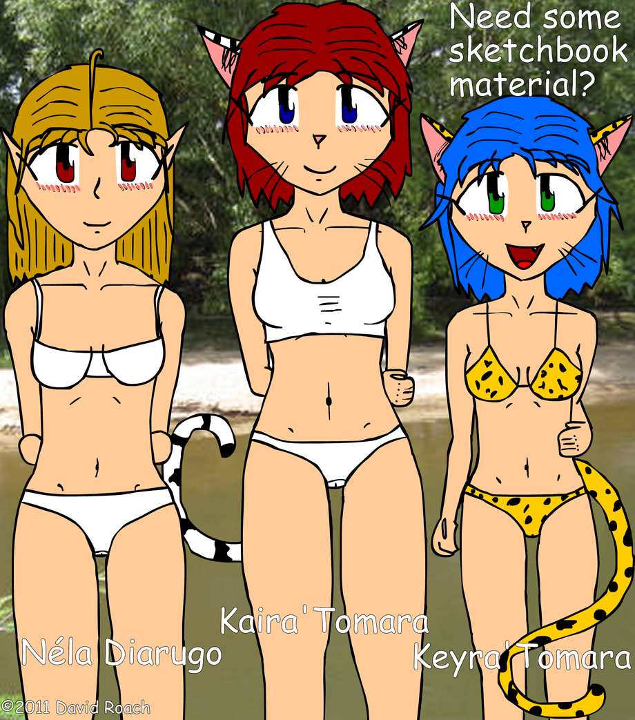 Néla, Kaira and Keyra do a pin-up by the river for their artist.
