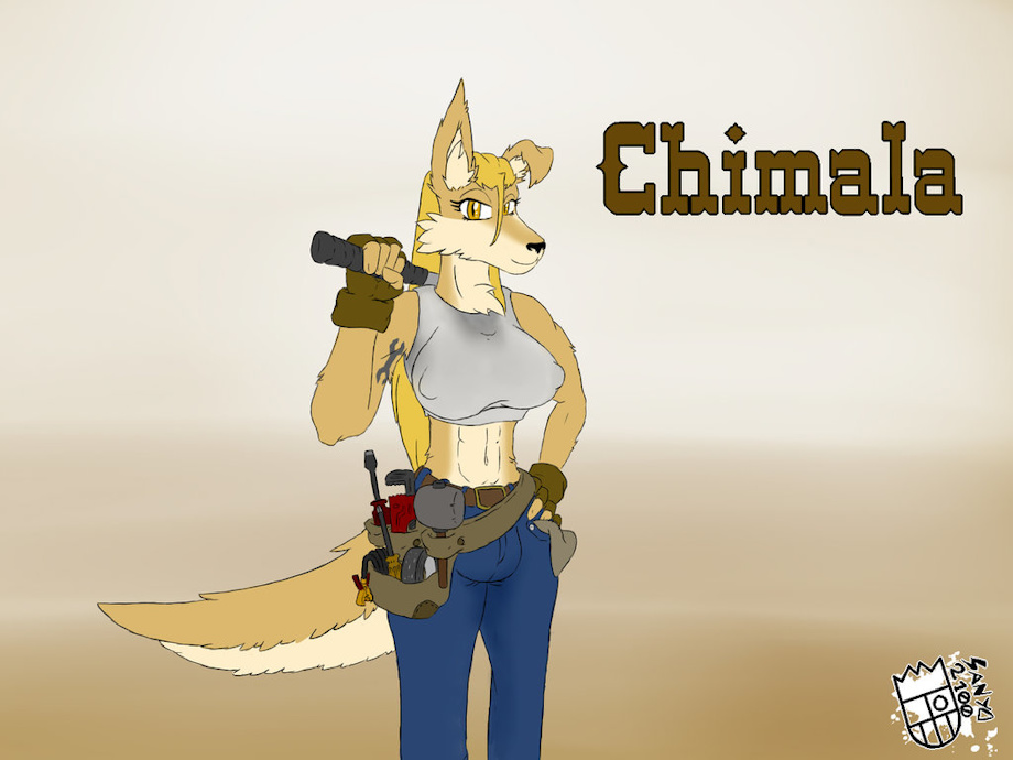 "Chimala, the happy technician. If you ever need anything built or repaired, she'll do it for a affordable charge... weather it's cash, card (yes, she has a card machine on her phone to charge your card) or even... ahem*Sexy times*ahem She offers sex as payment for those who're down on their luck and broke"