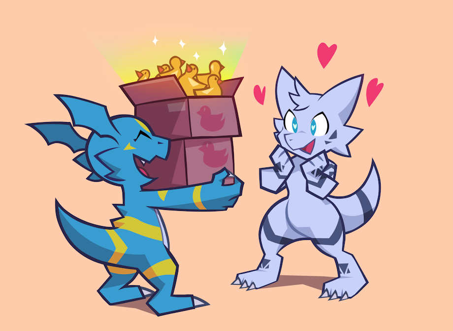 Seems Minnow has decided to share a bit of holiday goodness with Sven and Sifyro. Sven is as excited as ever to get anything at all from his best buddy~
