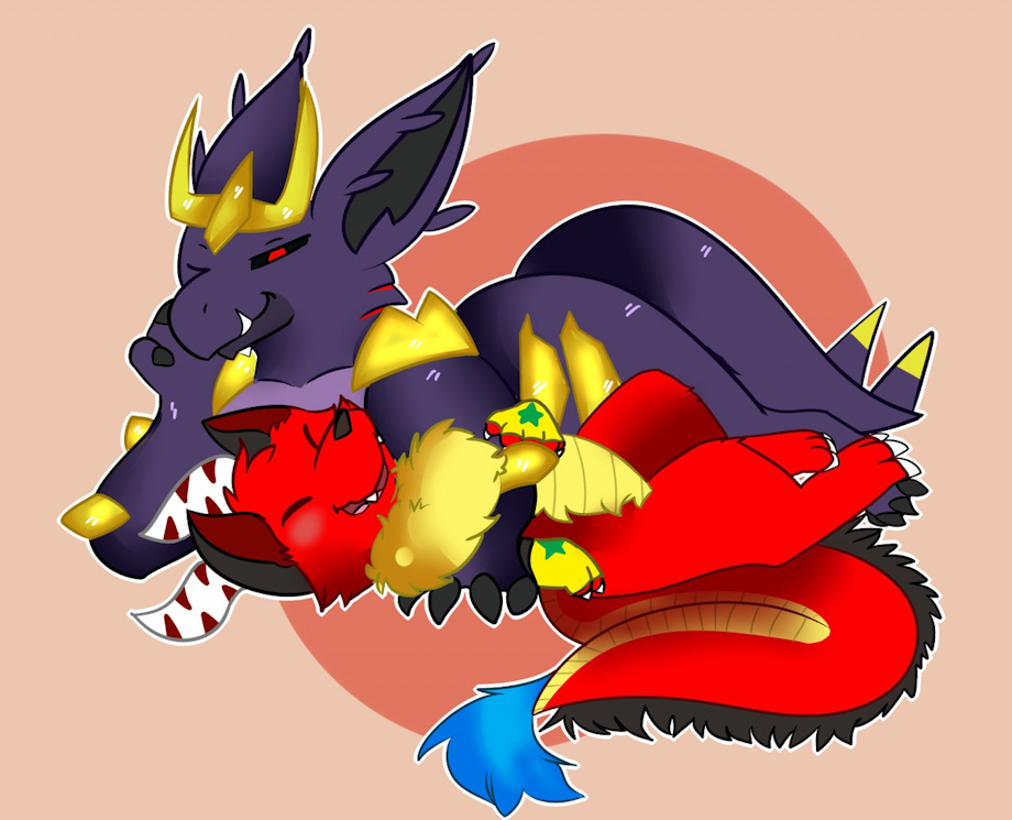 Another gift from Areyath with a more chibi style between my sona and his, cuddling up together and relaxing. c: