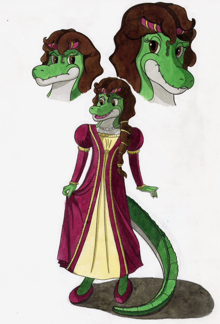 A work for the comics school, the homework required to create three anthropomorphic reptiles characters: a princess, a soldier and a merchant, with this kind of animals: a crocodile, an iguana and a gecko.
