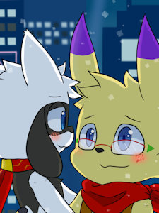 Tommy pulled the white Riolu to the center of the rather empty, snow covered roof. “Tommy. What are we doing here in the city?” Trynten question, leaning against Tommy’s soft fur. “It’ll be midnight soon. The manor doesn’t do much for it. To much of a risk, but I wanted to enjoy it with you still.” Tommy pressed up against his lover, pressing his nose under Tynten’s neck. “Alright, wanna clear all the snow.?”