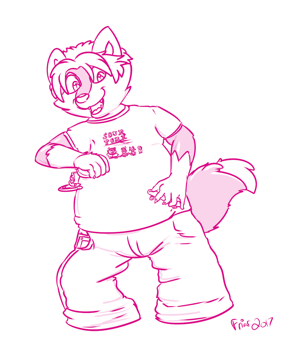 Friar playing with his dad's old thumb board and Tamagotchi.
