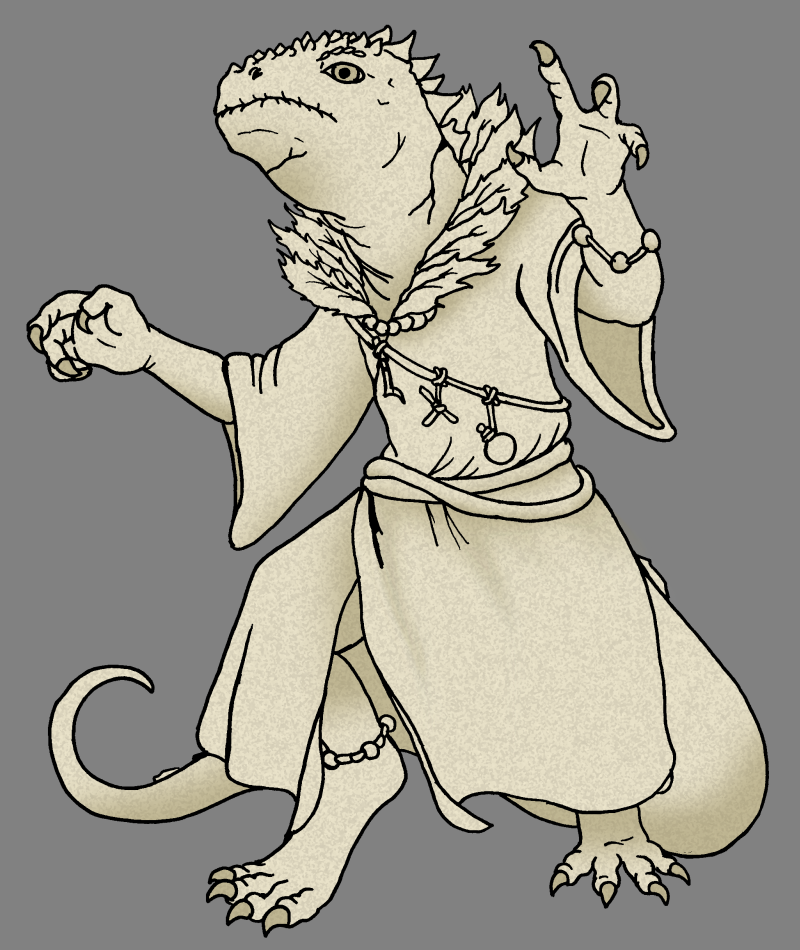 Commission for a D&D Character: A stone statue of a lizardfolk that was somehow animated and learnt how to cast spell