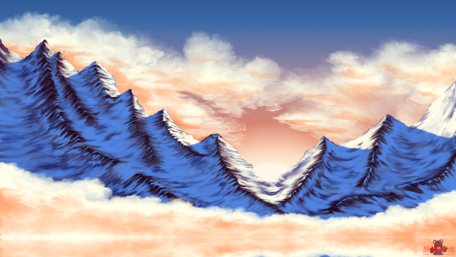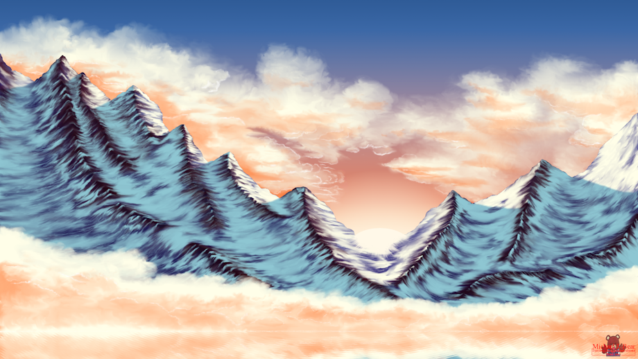 I'm glad to say that it was fun to create this simple landscape ... It's a collaboration project for one of my co-workers who's also a friend ... He works in the same area as me and he knows that I'm a furry. On his side he's also a comic creator and good cartoonist. He saw my stuff and he likes the way I do my lanscapes, especially my moutains and he asked me if I could do some for his background he needed for his upcoming project ...