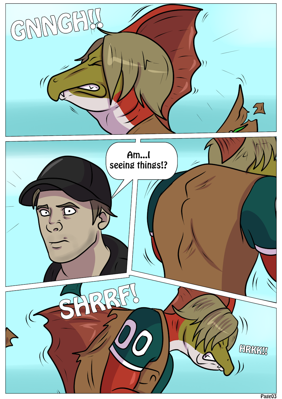 Realizing that he wasn't just seeing things, Apex also began to change, his face and arms growing feathers and knocking his hat off.