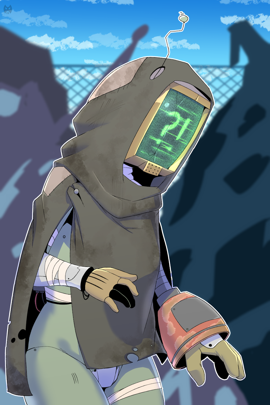 "got inspired by gats and his upcoming project of cyberpunk bots, and mad this little ting, her name is Minus. She spends her time picking up parts and and collect usb,s hardrives and other things that hold memory to figure out her past.
