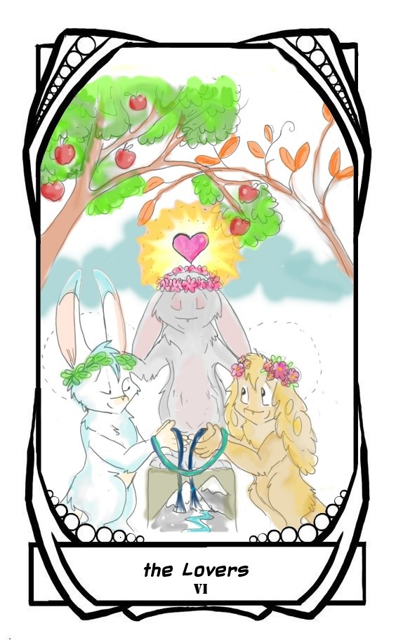 I sort of have my own version of the tarot cards... why because ... its a meditation... or just a picture of a hand binding where Habibah plays the part of priestess blesses the mating / joining of Puck and Monty..