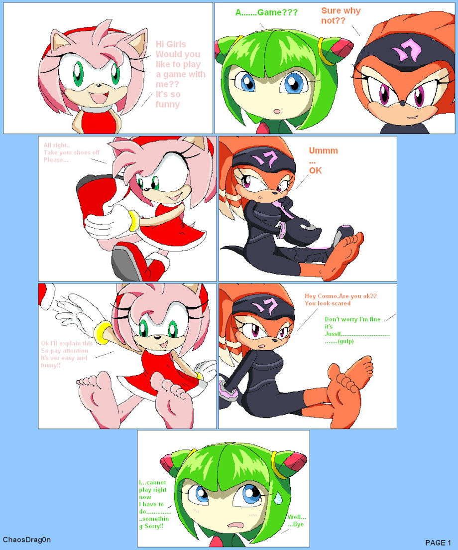 In the 3rd page, the reason Cosmo says not again is because ChaosDrag0n made a foot tickle comic (or pic, I'm not sure...) that featured Cosmo and her sister.