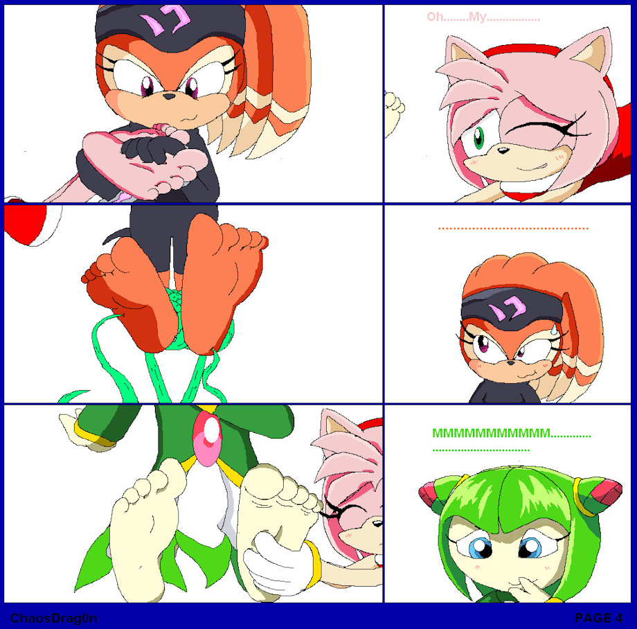 In the 3rd page, the reason Cosmo says not again is because ChaosDrag0n made a foot tickle comic (or pic, I'm not sure...) that featured Cosmo and her sister.