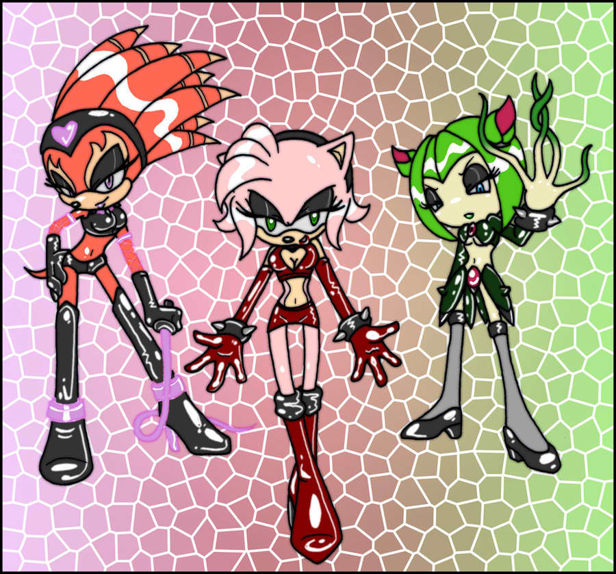Seeing this, inspiration struck, and I came up with the idea to have this Hypno-Dom version of Amy team up with Hypno-Dom versions of 2 characters: Cosmo from Sonic X and Shade from the 2008 game, Sonic Chronicles. By this time, I was well into commissioning a good amount of pics featuring the trio as I finally determined what team name to give them for my new dA group: Team GFs.