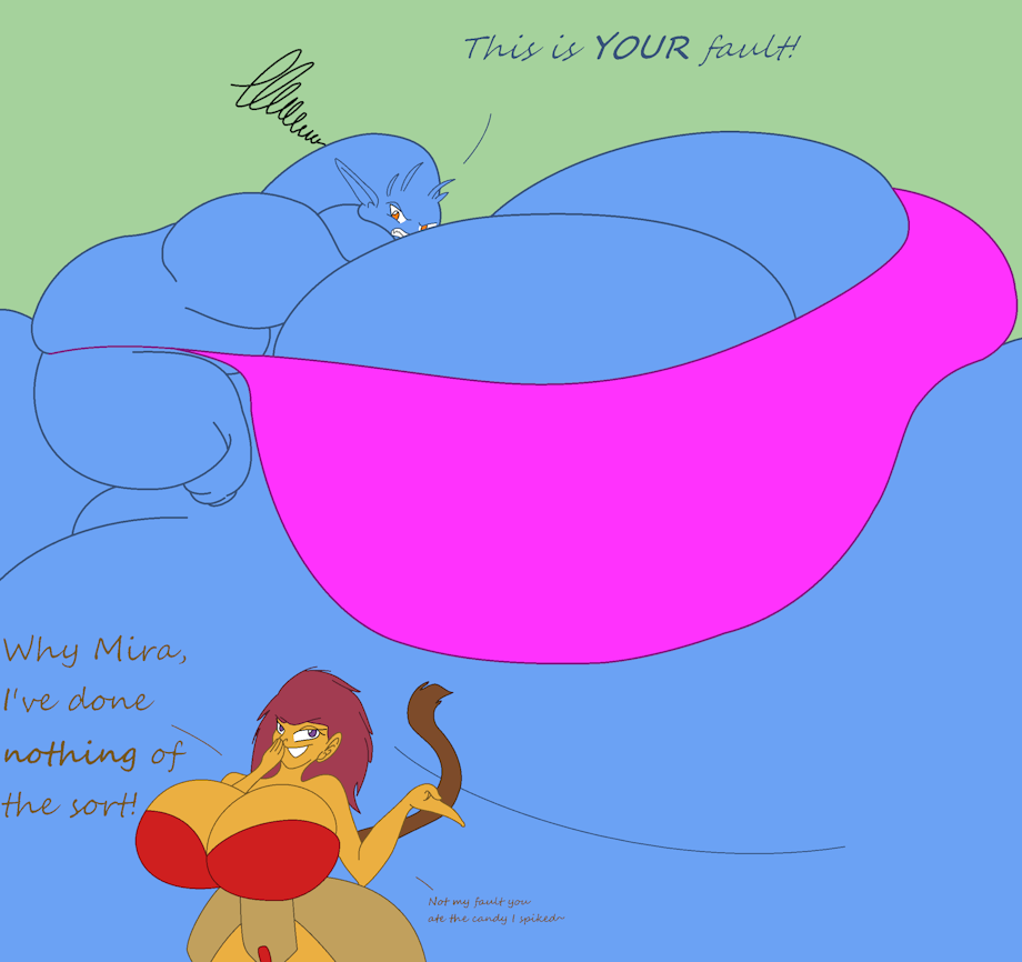 My Fem Monkey, now naming herself Kiki cause it's cute shut up, has pranked Keith's Mira by boobie-trapping her candy to make her into a lovely blimp. What a jerk~.