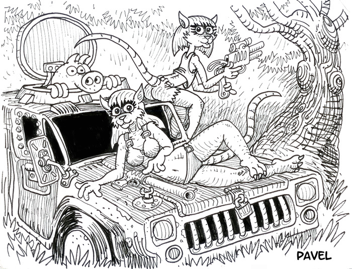 Their story will also develop as I go. Pinton is fascinated with them because they are a predator race, natural hunters unlike him who comes from opportunist omnivores. And of course, eventually there will be a threesome there.