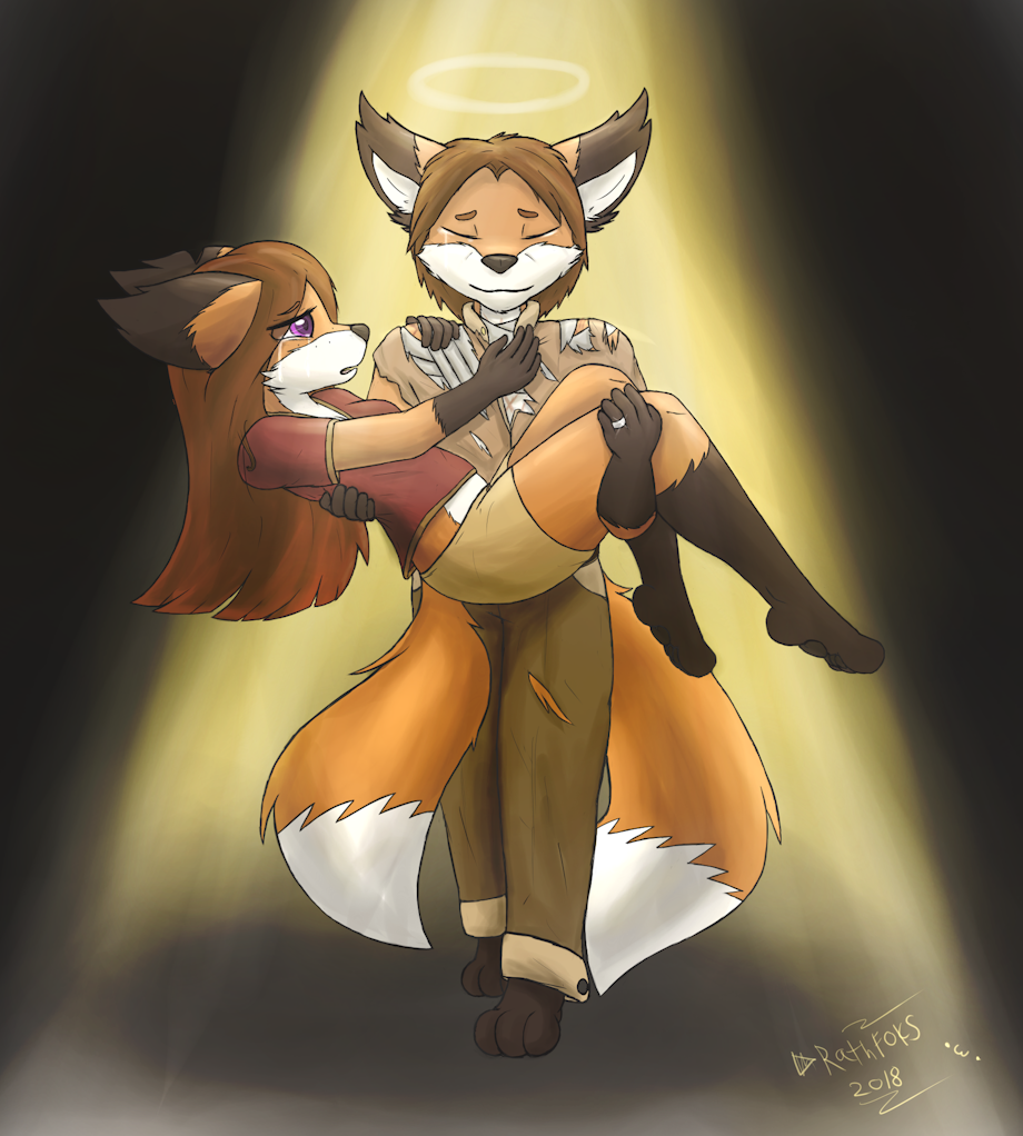 She stands around 5'8, has violet eyes and the usual red fox features and fur patterns. She has two scars, one on her left ear, and a larger one down her right shoulder blade. She has modest feminine features, and long brown hair.