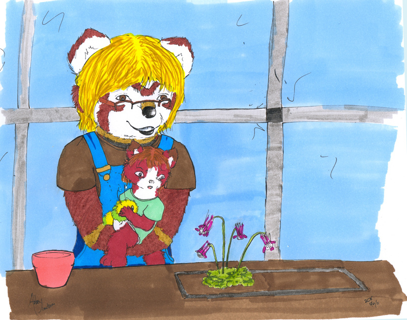 Nikol' love's her garden, it's a fact well reverberated throughout the entire yard. Every inch of available yard space is flooded throughout the spring and summer with colors of every kind and a variety of flora. Throughout the seasons she tends to the green house, making sure new plants grow as the summer progresses. This activates a certain curiosity in Nikol's daughter, Gem, as to where her mother goes off to everyday. As Nikol' preps herself to, once again, go to the greenhouse, Gem carefully toddles up to her. She carries grub, her little worm plush, in tow of course.