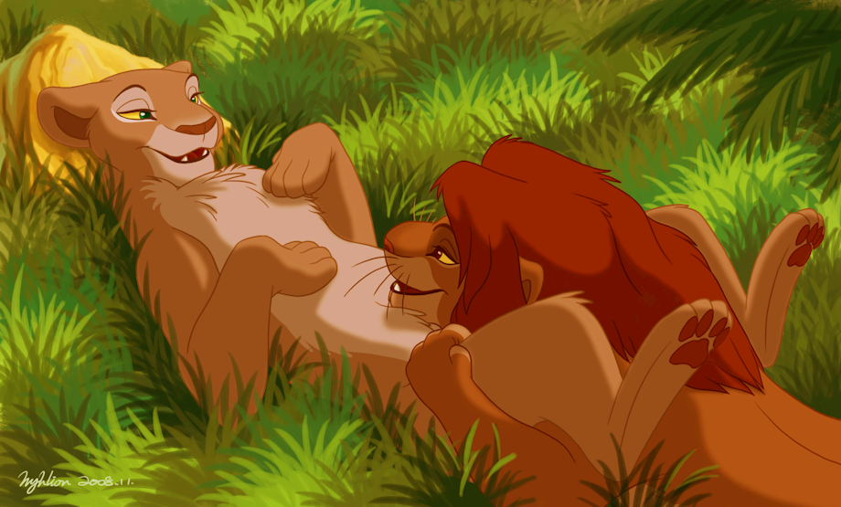 I love this picture. It is rather obvious what Simba has in mind and Nala likes what he is thinking.
