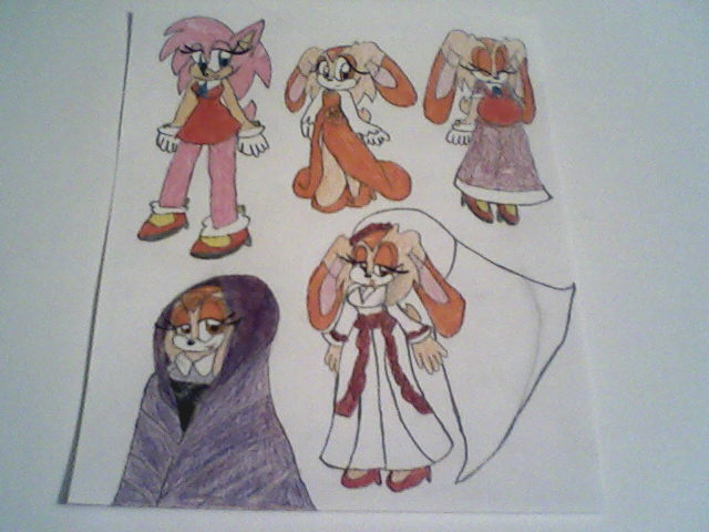 Yep. Amy in Cream's outfit, Cream in her color version of Amy's dress from season 1 of Sonic X, older Cream pregnant with Tails' child, older Cream as Briar Rose/Aurora with her hood, and in a Wedding dress.
