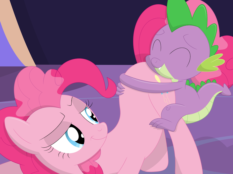 pinkie pie allows spike to snuggle her soft and cuddly behind