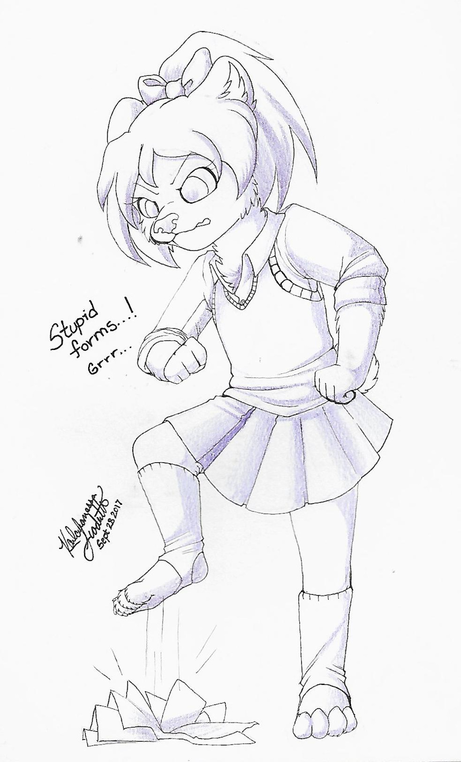 This was a gift I made months ago for @strangetales after he was getting frustrated over some paperwork and annoying forms. So I drew Chelsea having a little fit and stomping them out x3