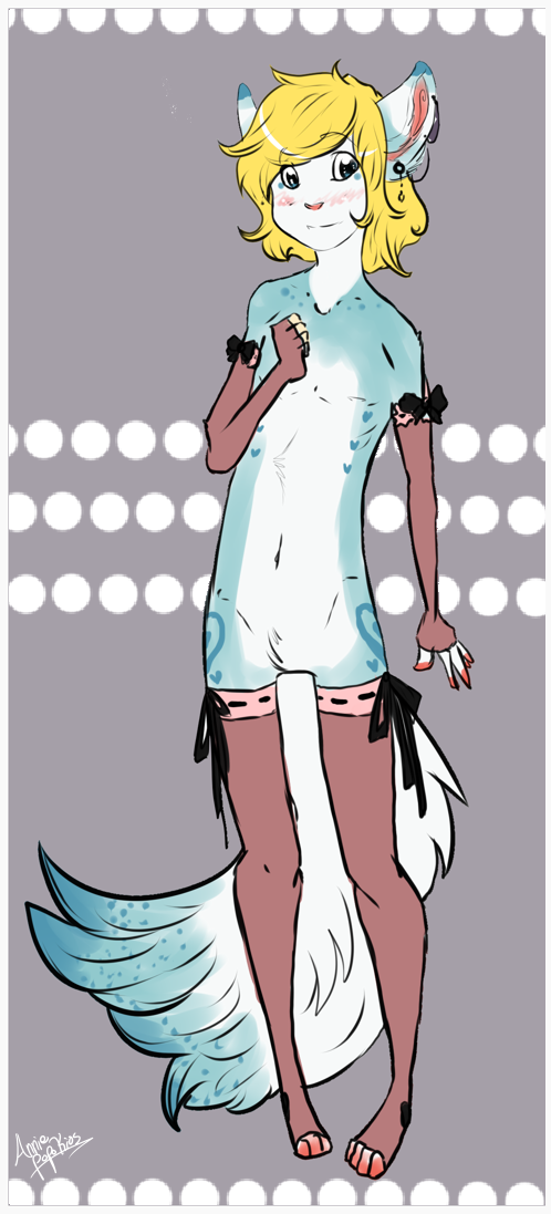 This is an adoptable I got from @DeletingThisAccount. I love the clothes on her! I wish I could design clothes like that x3