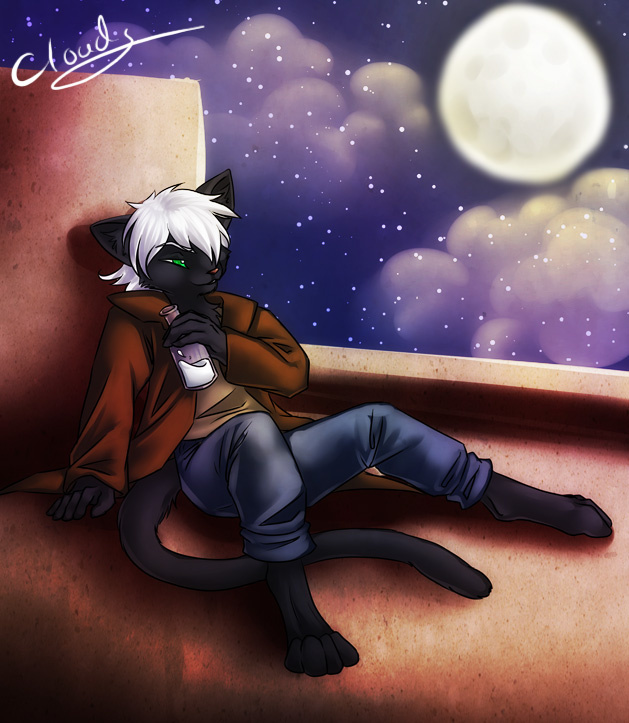 Kaito here drinking his bottle of milk, watching the full moon..