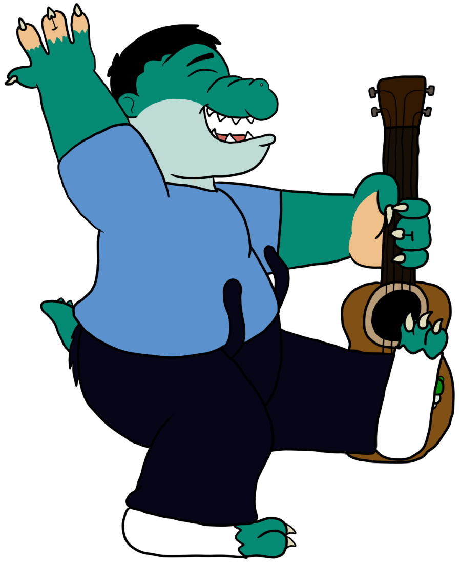 A sequence of me finding a ukelele and playing a tune that transforms me into a fat gator