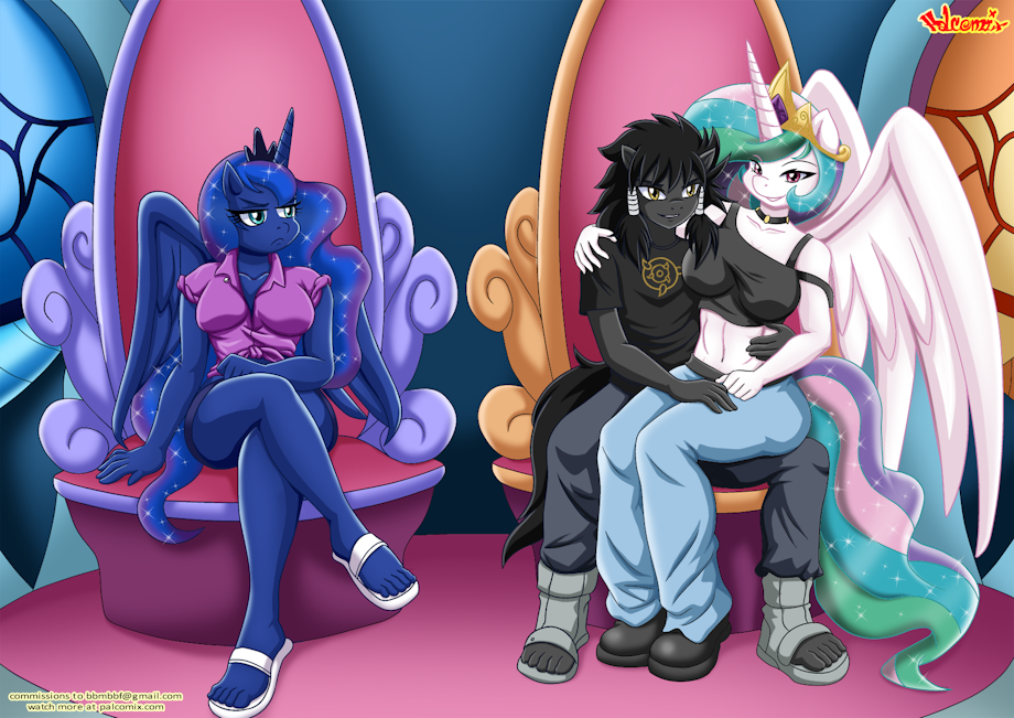 I like the outfits they're wearing. Poor Luna. Celestia always has to one-up her.