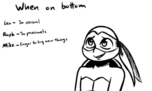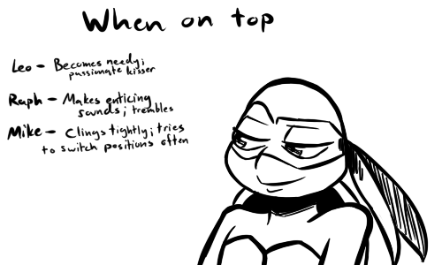 Like: Leo is on top, he likes that Mikey gives as much as he takes, etc.