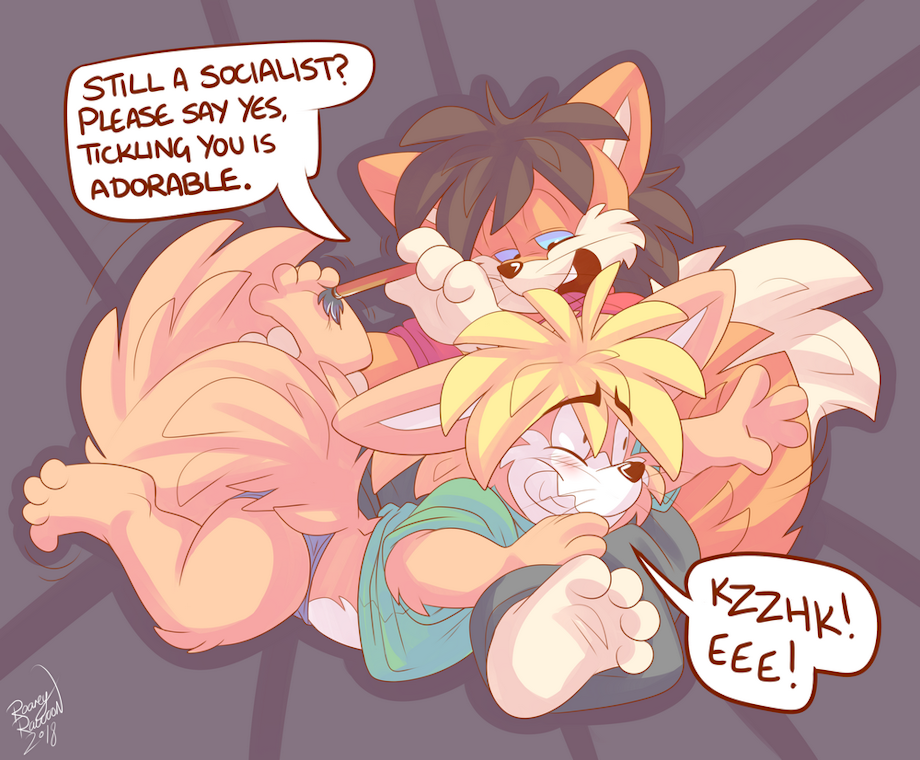 Decided to make my two characters from the past couple cartoons into actual characters XP. The fennec, Dibbles (yes, I'm silly) is a ticklish socialist and the red fox, Pip (also silly) is a...what Sargon of Akkad would term a liberalist. And a tickler. I plan to do more lighthearted 'political' cartoons with them in the future XP.