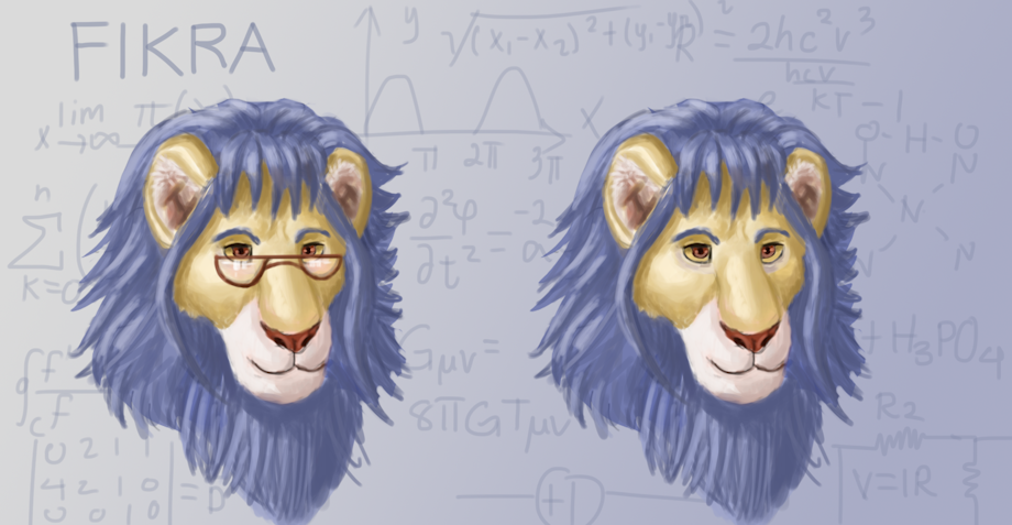 Background: Well oddly, he grew up in a human city in Tanzania. He inherited his father's mutated genes which had been inherited by his father and of which from his father's father. Fikra's grandpa was a test subject who had been tested if a nootropic would take effect in enhancing a lion's mental capability. (But now I would be changing the concept since "test subject" could be a shocking and controversial topic) Well I would gladly change it to a time when some nootropic formula accidentally spilled on Fikra's grandpa's food. After his grandpa ate the contaminated meat, a few months later, his mane tuned blue and had human mental capabilities. Well to cut the story short, Fikra's inherited the gene and was born with a blue mane and also Fikra himself.