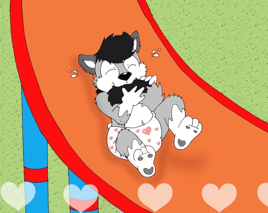 So I joined with the rest of the Paw Patrol in a game of super heroes. They game me a nice cape and all to join them and I was so happy ! We had lots of fun but after it ended, I discovered the cape in question was a bib and that it was going to be used at dinner ! I huffed and complained, which only ended with my bottom reddened, and put to bed right after dinner. And when I finally got to sleep someone took pictures of me in that position ! I have been betrayed ! I'm a big pup superhero !