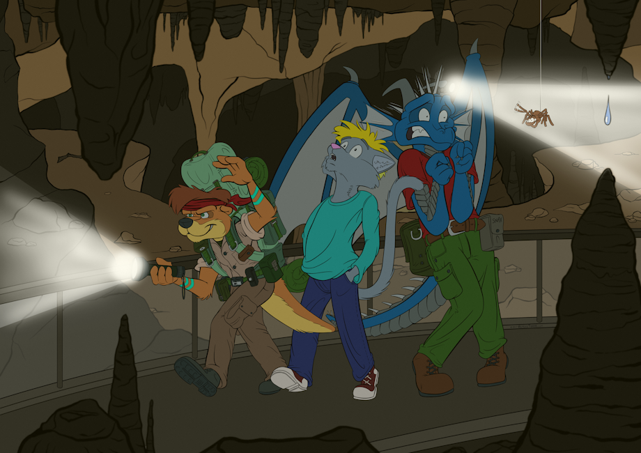 Based on a true story. That cave really was an adventure. Got this as a Christmas gift from MetalKittieh and I am loving it so much. Frazzle is a legend as an artist and having him draw our characters is so awesome. Really loving how the expressions turned out.
