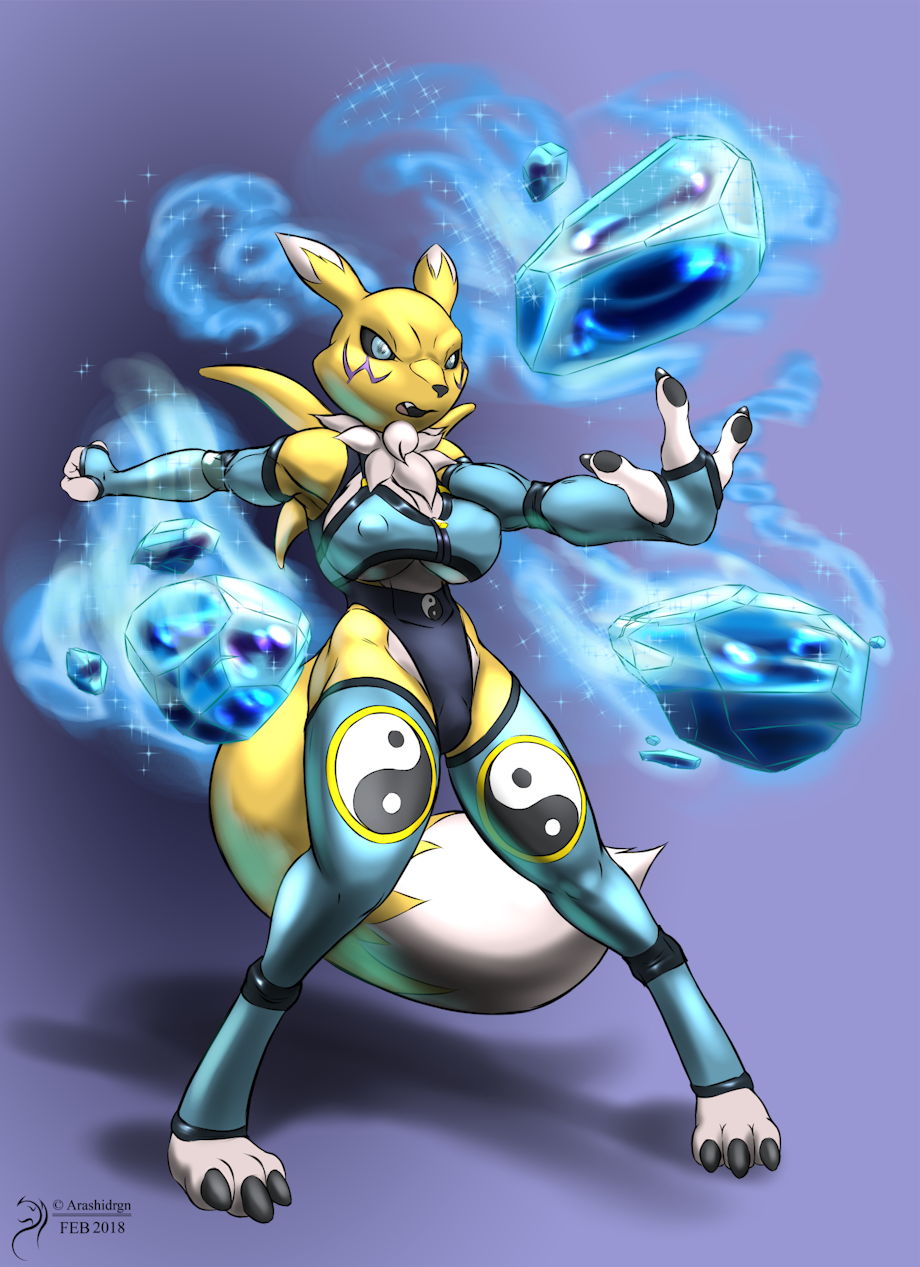 A side doodle that I might have gotten carried away with. It was an excuse to try some effects with ice. Also, fandom sex symbol or not Renamon was also a bad ass, so, maybe she deserves a piece where she's being cool.
