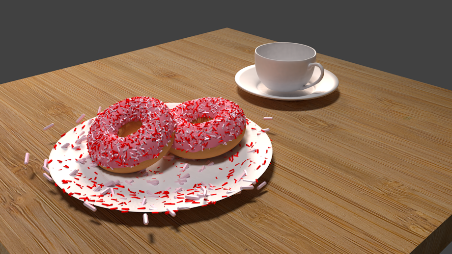 This is my first real scene. I started it back in January 23rd 2017. And finished. March. 25th. 2017. I have also made a spin-off of this with two plates of donuts three cups and a background. Got to search through my old. Computer to find it though. Since it's not in my OneDrive. I should have uploaded this on Valentine's Day. What was I thinking?