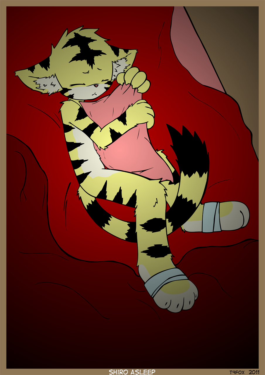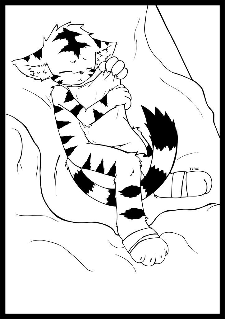 Well.. o.o For me. It looks like he is in some sort of emotional pain, maybe he saw a dream, where his loved one dies, or is hurt.. Or he is left alone, misunderstood etc.. He's just looking some comfort now from his pillow, who always serves him well, when he sleep. <3 Really nice picture.