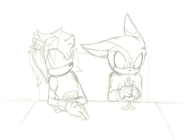 I had this idea that before Decay and Syx's engagement, before they started dating, when they have just started out as friends, Syx is nervous about having his first friend and hanging out with his new friend while Decay being Decay just out of the blue touches Syx's ear because of his lack of boundaries. I don't think Syx would expect it and probably is a personal thing for him if not maybe sensitive. I also don't know what Syx is drinking.