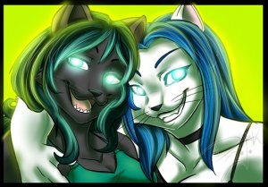 A gift from Nite of our characters Leah and Thal being... friendly? This must be some lie xD Either the girls are drunk or someone's misleading the other into a trap!