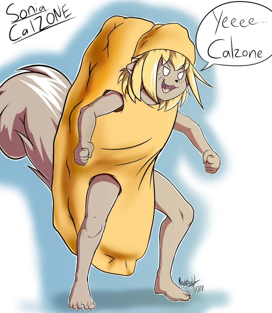 I apologize if you didn't appreciate my comment about me finishing a calzone that i thought i couldn't eat, was just saying that if there was a calzone the size of your characters costume then I wouldn't be able to eat it. didn't notice your character is a squirrel so that would be a very small calzone. I apologize for the error.