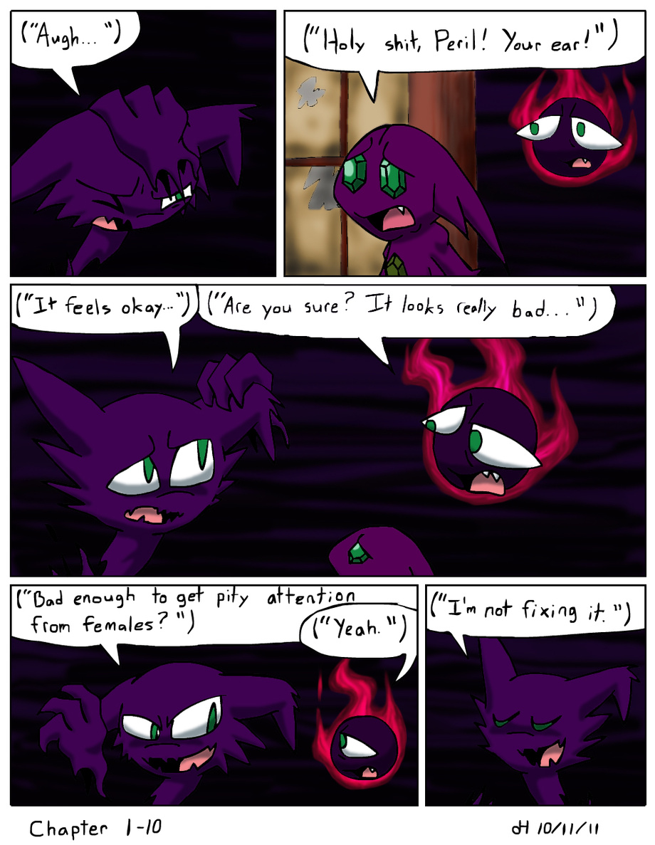 Panel 2: ("Holy shit, Peril! Your ear!")