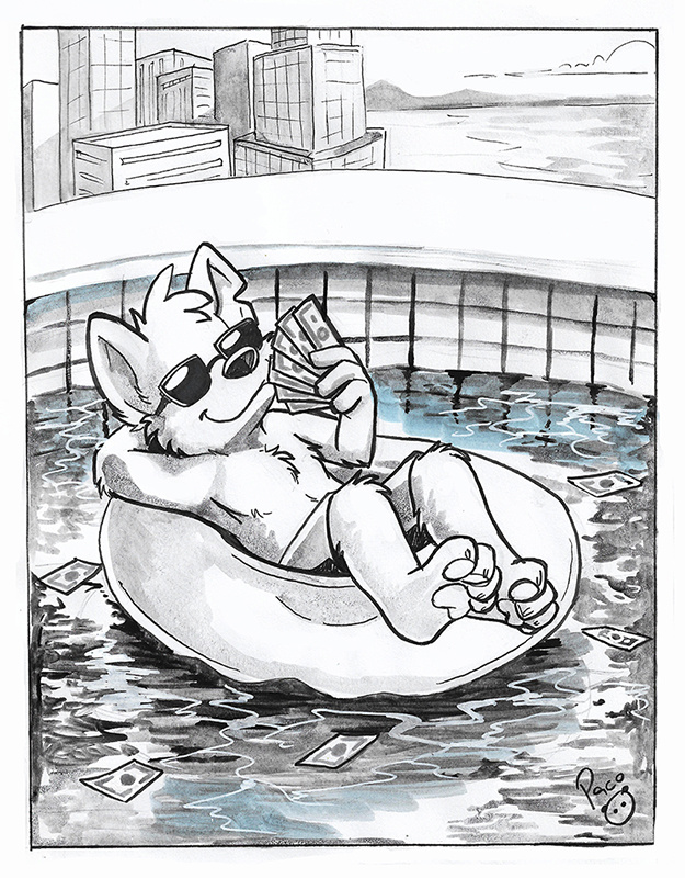 Inked illustration for the Furnal Equinox conbook. The theme of the convention was "Livin'Large"