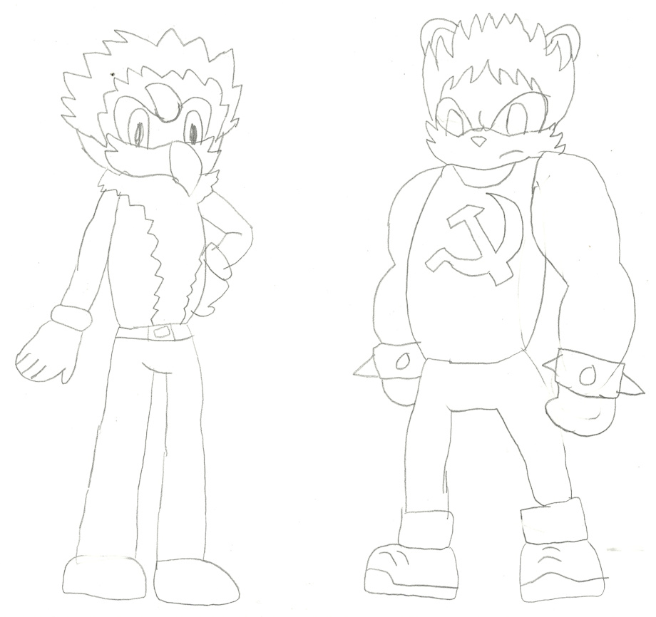 Bruce Force: A red & black hawk with blue eyes who is a tough guy in his local neighbourhood. Has a mowhawk.
