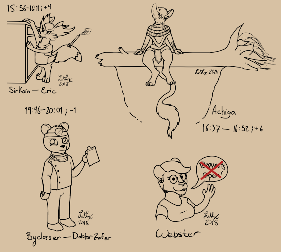 Art for <!~sirkain>, Achiga @ FA, and Byclosser.