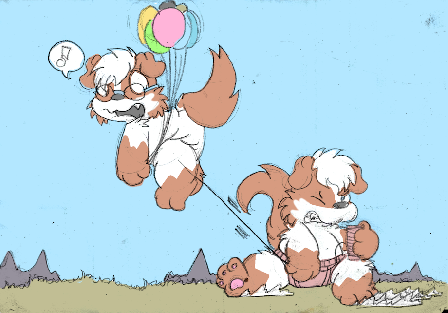 Nelson88 did that drawing for me, so I'm doing another for him. After noticing that Yure is gone flying, the pups set up a plan to get him back. I'll color that picture, tho, it's unfinished, but there's the progress. I own the cat, Nelson88 own the puppies.